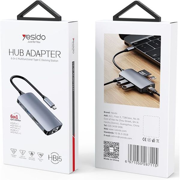YESIDO HB15 USB-C HUB 6IN1 GREY