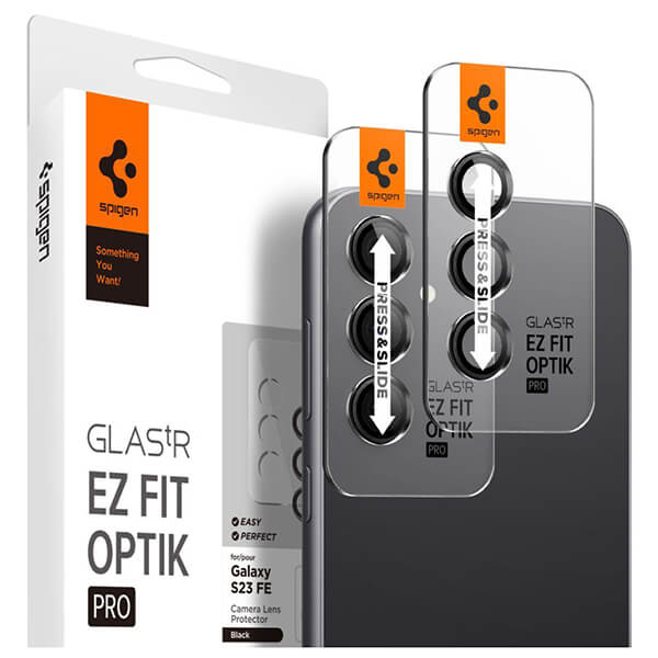 SPIGEN GLASS TR EZ FIT OPTIK PRO BLACK 2 PACK FOR SAMSUNG GALAXY S23 FE
