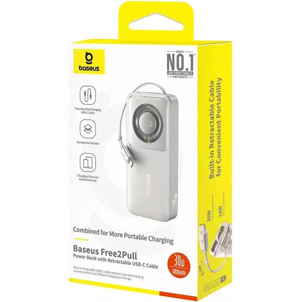 POWER BANK BASEUS FREE2PULL 10000MAH 30W TYPE-C CABLE GREY