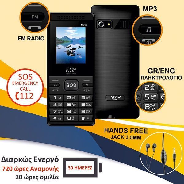 ΚΙΝΗΤΟ NSP 1850DS BLACK (ΕΛΛΗΝΙΚΟ ΜΕΝΟΥ) 2SIM BT ΟΘΟΝΗ 1.8" ΚΟΥΜΠΙ SOS & ΔΩΡΟ HANDS-FREE