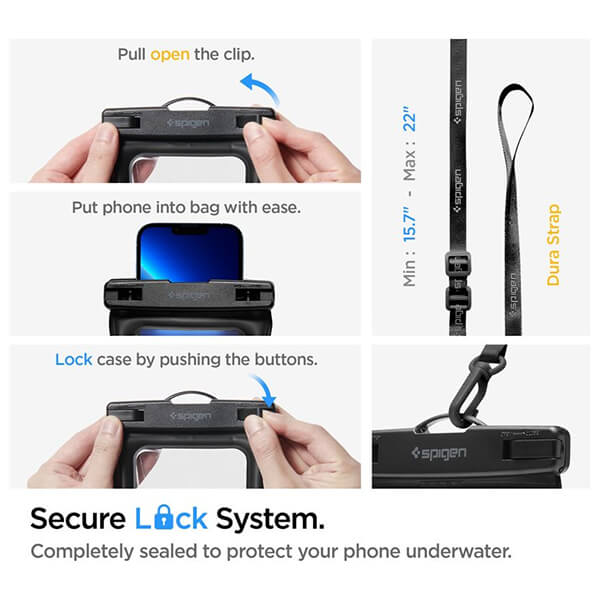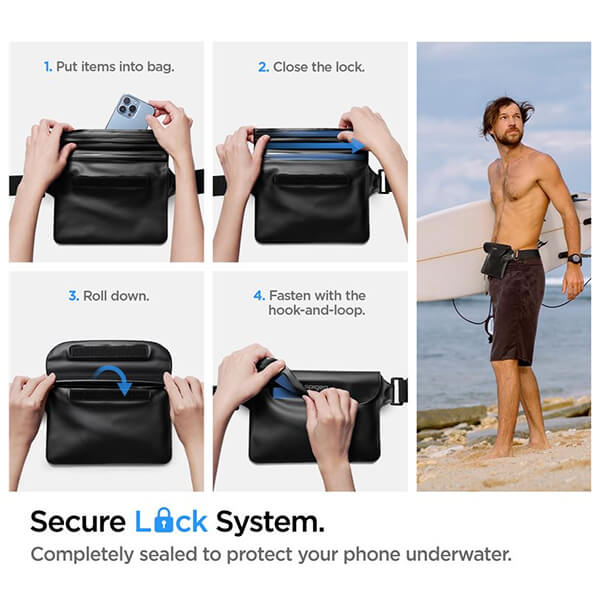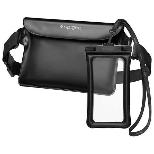 SPIGEN AQUA SHIELD WATERPROOF FLOATING CASE + WATERPROOF WAIST BAG A621 SET BLACK