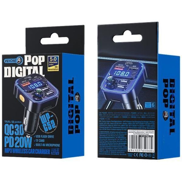 FM TRANSMITTER WK CAR CHARGER AND MP3 PLAYER WITH LED LIGHT WP-C52