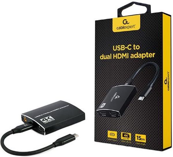 CABLEXPERT USB-C TO DUAL HDMI ADAPTER 4K 60HZ BLACK RETAIL PACK A-CM-HDMIF2-01