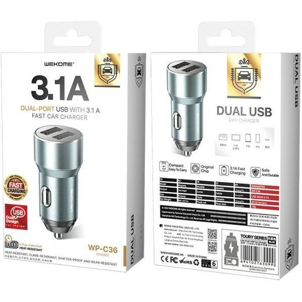 CAR CHARGER WK 15W DUAL USB 3.1A TOURY DARK BLUE WP-C36