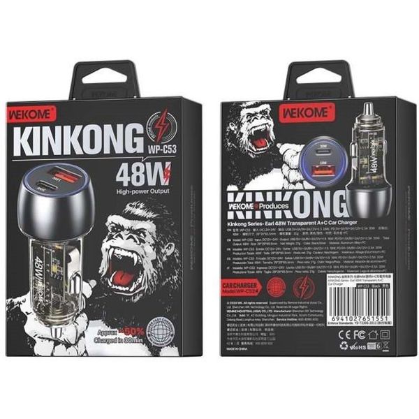 CAR CHARGER WK 48W PD+USB QC 3.0 BLACK WP-C53