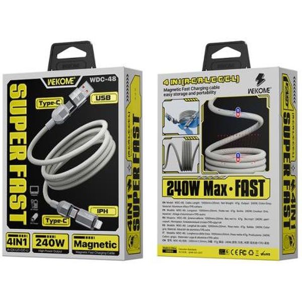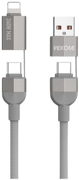 CHARGING CABLE 4 IN 1 WK 240W USB/TYPE-C TO I6/TYPE-C GREY 1M WDC-48