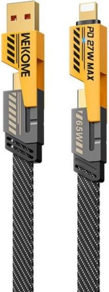 CHARGING CABLE 4 IN 1 WK 65W USB/TYPE-C TO I6/TYPE-C YELLOW 1.2M WDC-25