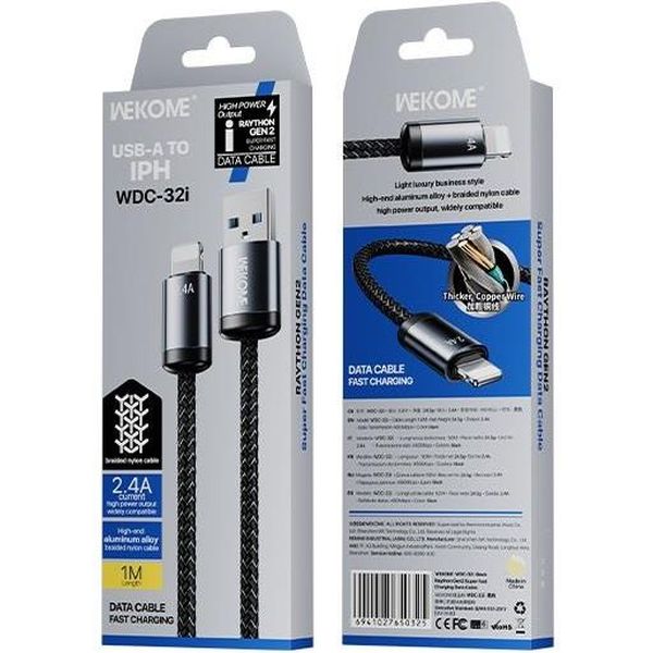 CHARGING CABLE WK I6 BLACK 1M WDC-32 2.4A