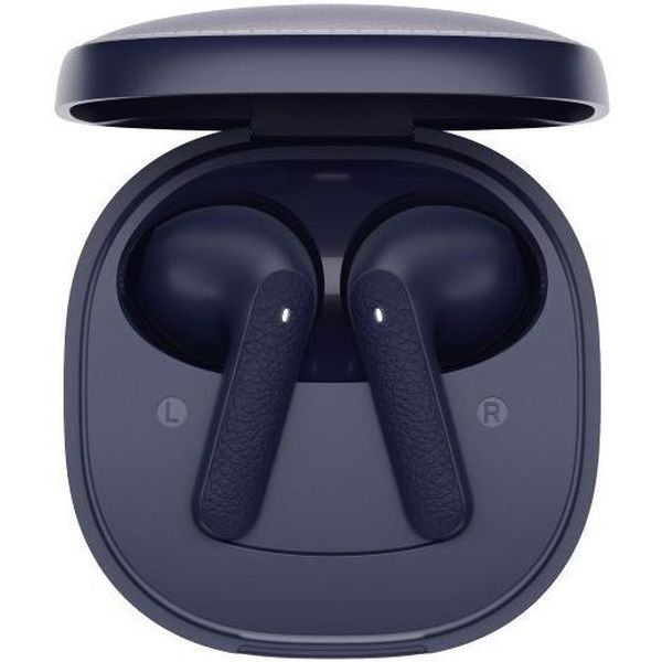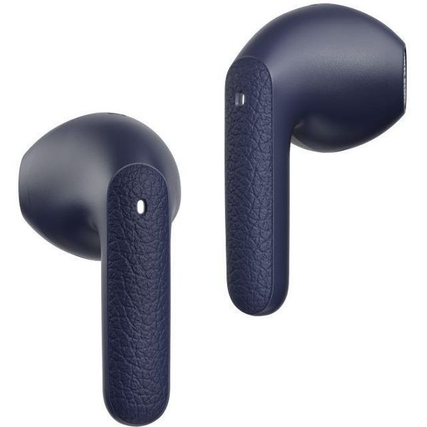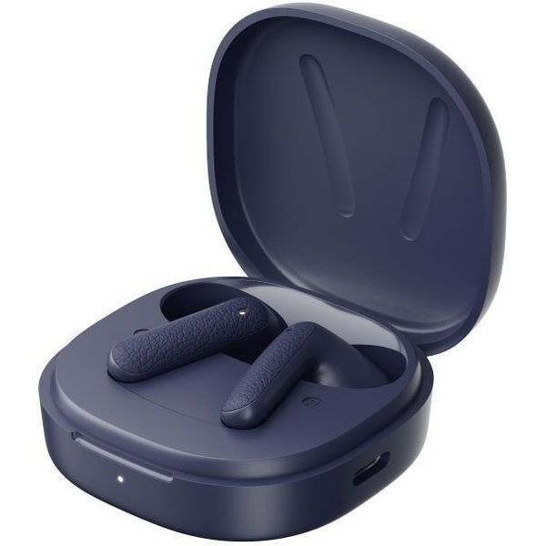 QCY AIR BLUE SEMI-EAR TWS EARBUDS, QUAD MIC ENC MULTI-POINT CONNECTION, LEATHER GRAIN CASE