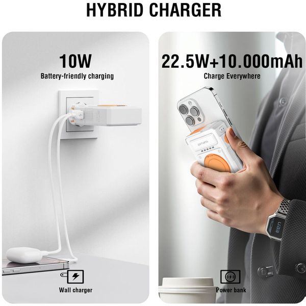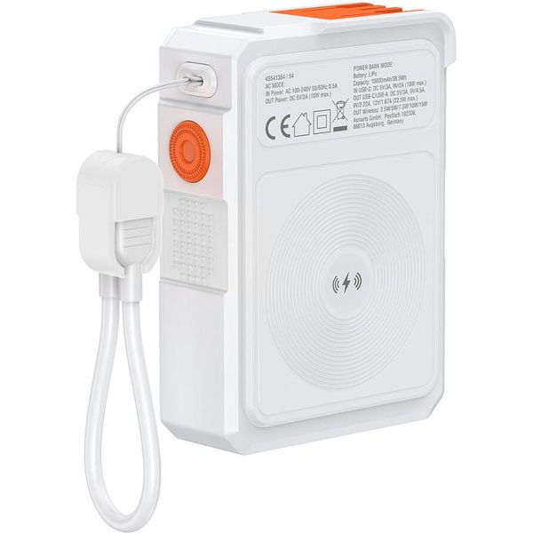 4SMARTS 6IN1 HYBRID CHARGER WIRELESS POWER BANK 10000MAH WHITE