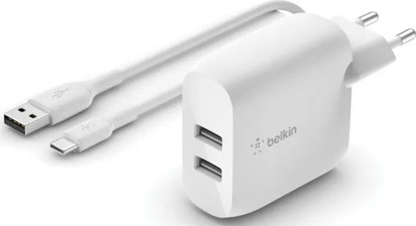 BELKIN WCE001VF1MWH BOOSTCHARGE DUAL USB TYPE-A WALL CHARGER 24W + USB-A TO USB-C CABLE