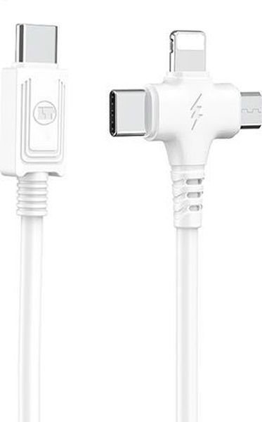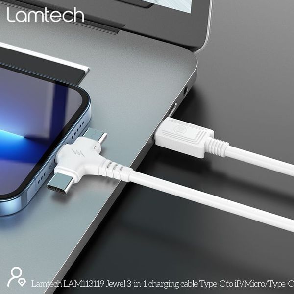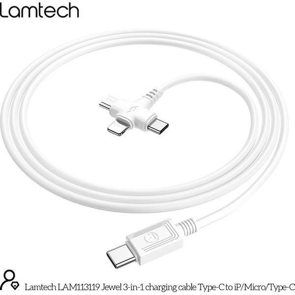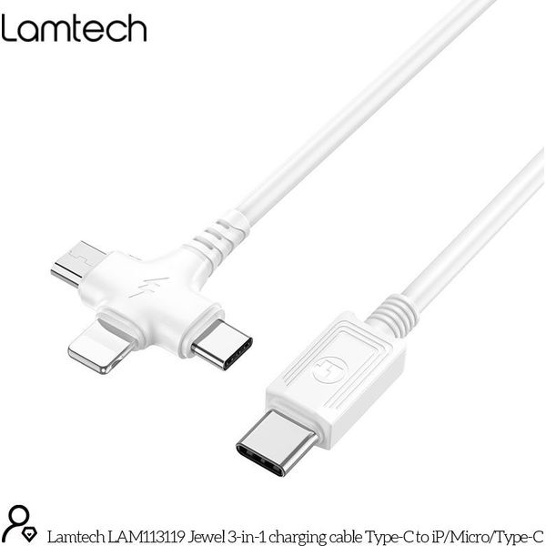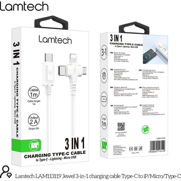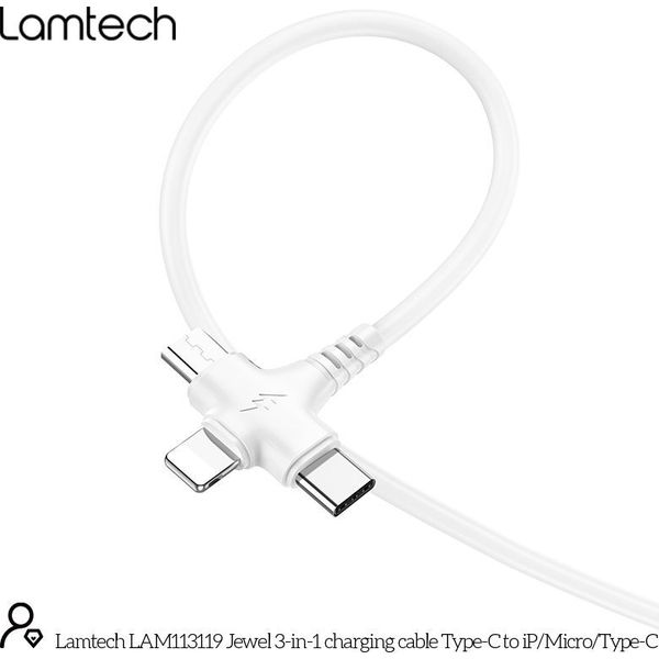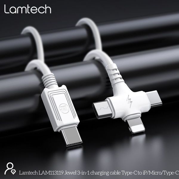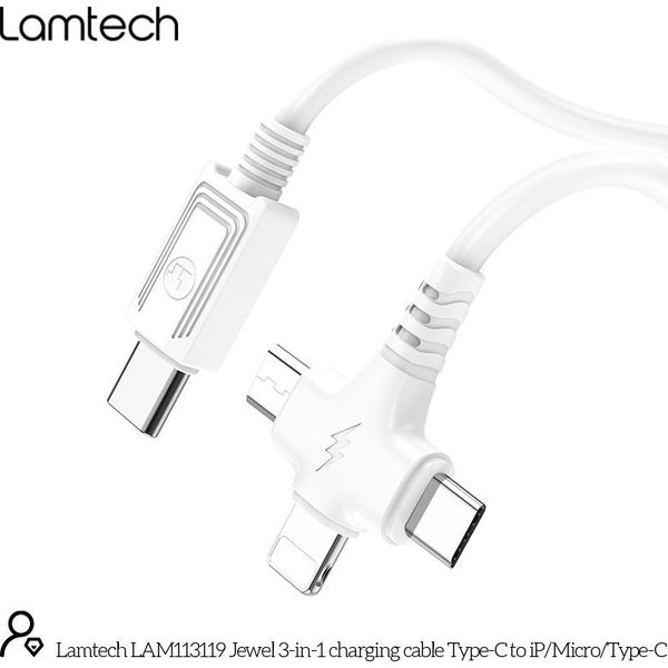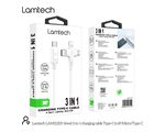 LAMTECH 3 IN 1 CHARGING TYPE-C CABLE TO TYPE-C/LIGHTNING/MICRO USB 1M WHITE LAM113119