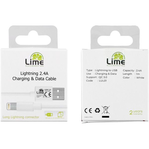 LIME LUL01 ΛΕΥΚΟ KΑΛΩΔΙΟ USB-Α ΣΕ LIGHTNING LONG 2.4A 1M ΓΙΑ ΦΟΡΤΙΣΗ ΚΑΙ ΔΕΔΟΜΕΝΑ 12W