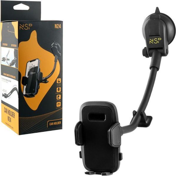 NSP N24 UNIVERSAL BΑΣΗ ΣΤΗΡΙΞΗΣ ΚΙΝΗΤΩΝ ΑΥΤΟΚΙΝΗΤΟΥ ΜΕ ΕΥΚΑΜΠΤΟ ΒΡΑΧΙΩΝΑ 70MM 360° 4.7"-7.2"