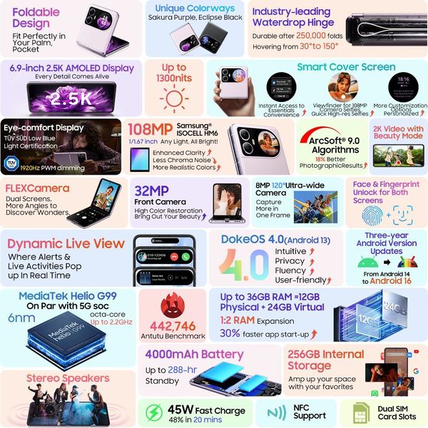 ΚΙΝΗΤΟ BLACKVIEW HERO 10 (12GB+256GB) NFC FLIP SMARTPHONE ANDROID 14 BLACK HERO10-B