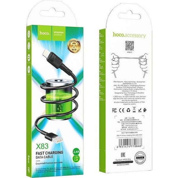 HOCO USB-A TO LIGHTNING CABLE X83 VICTORY 18W 2A 1M BLACK