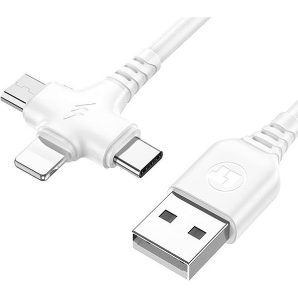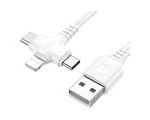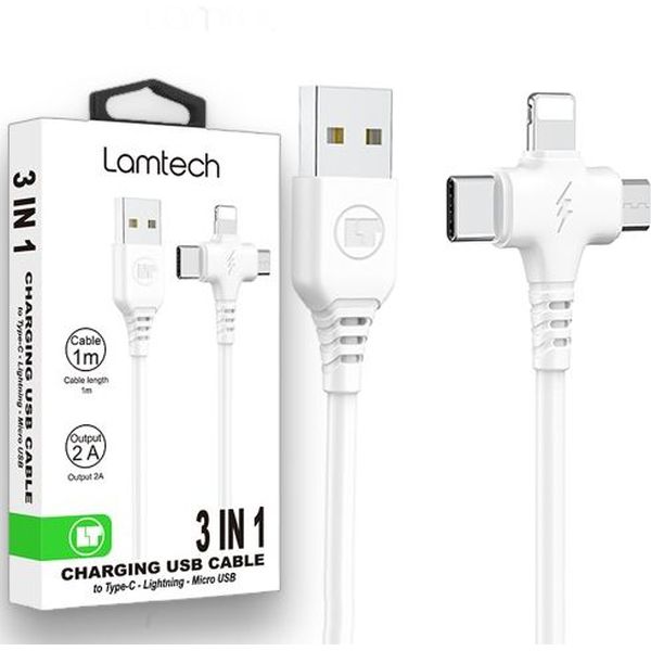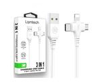 LAMTECH 3 IN 1 CHARGING USB CABLE TO TYPE-C/LIGHTNING/MICRO USB 1M WHITE LAM113102