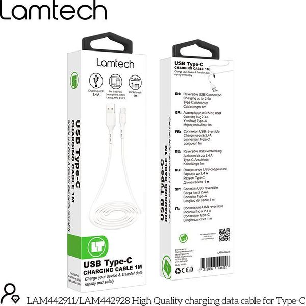 LAMTECH DATACABLE TYPE C 1M WHITE LAM442928