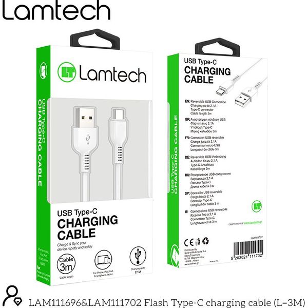 LAMTECH DATACABLE TYPE C 3M WHITE LAM111702