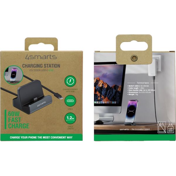 4SMARTS CHARGING STATION VOLTDOCK USB TYPE-C 60W 1.2M CABLE GREY