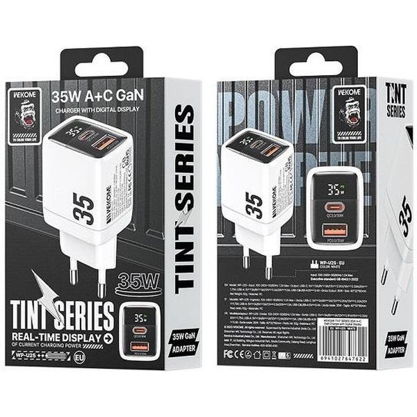 CHARGER GAN WK 35W PD+QC3.0 WHITE WP-U25