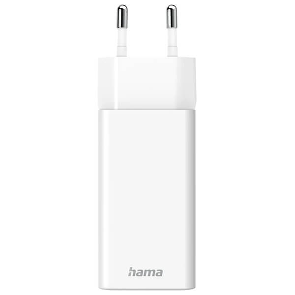 HAMA 125130 QUICK CHARGER, GAN, 1X USB-C PD, 1X USB-A QC, MINI-CHARGER, 65 W, WHITE