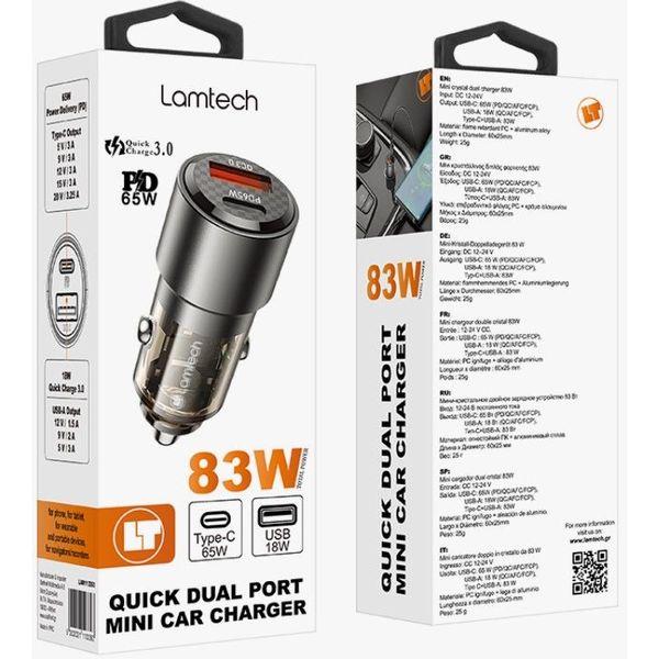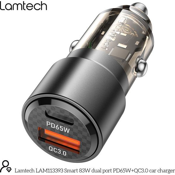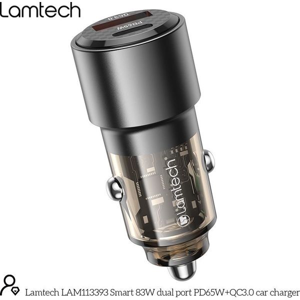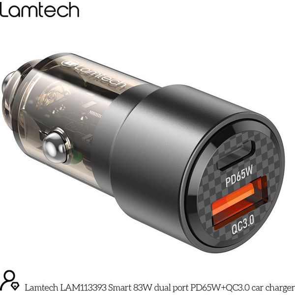LAMTECH QUICK DUAL PORT MINI CAR CHARGER 83W LAM113393