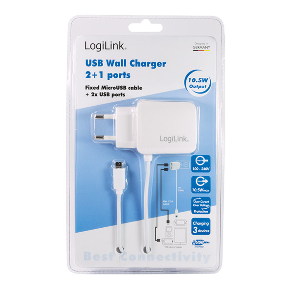LOGILINK PA0157W USB WALL CHARGER 2+1 PORTS WHITE