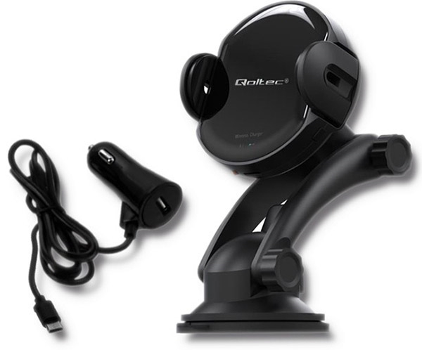 QOLTEC 51219 INDUCTION WIRELESS PRO CAR CHARGER WITH IR SENSORS 15W QC 3.0 USB TYPE-C