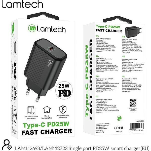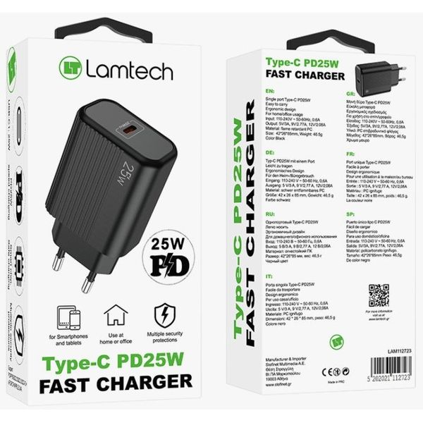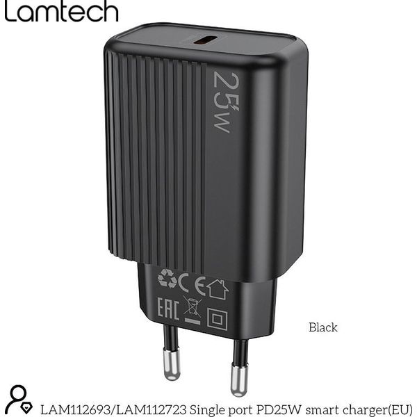 LAMTECH FAST CHARGER TYPE-C PD25W BLACK LAM112723