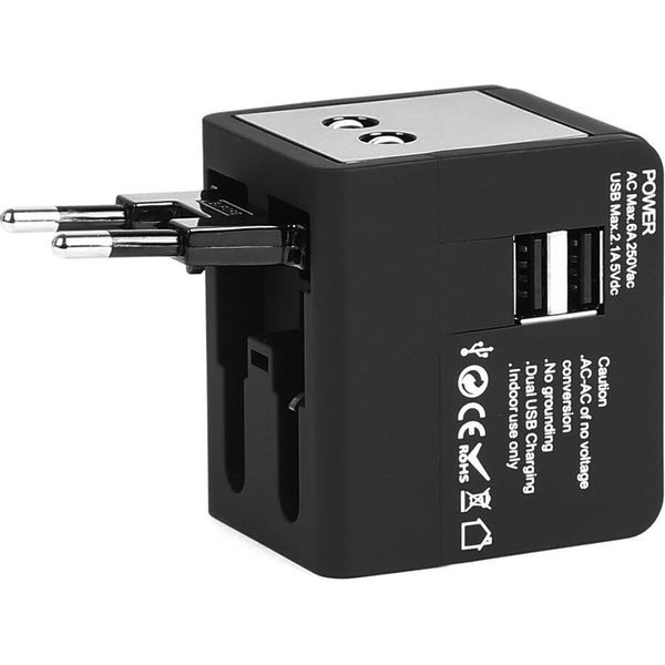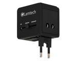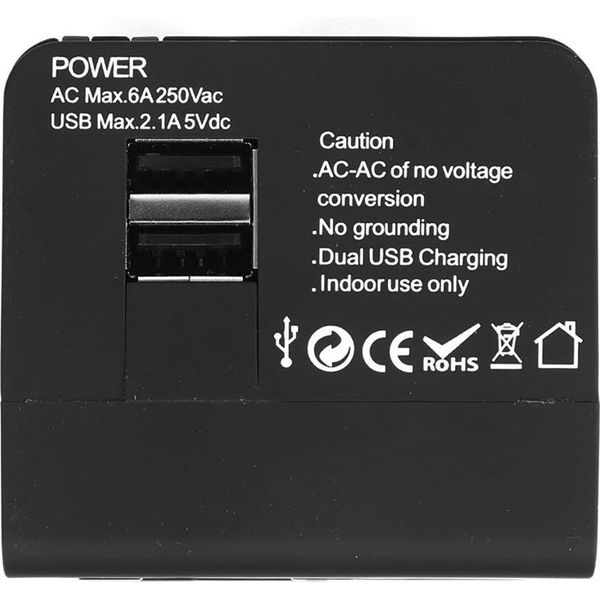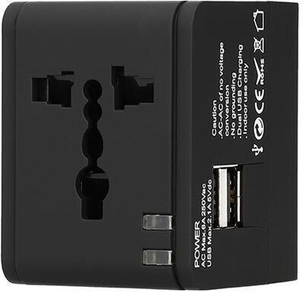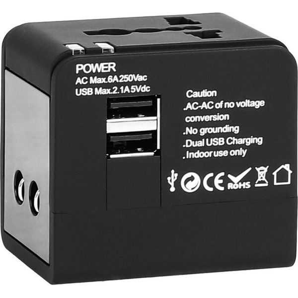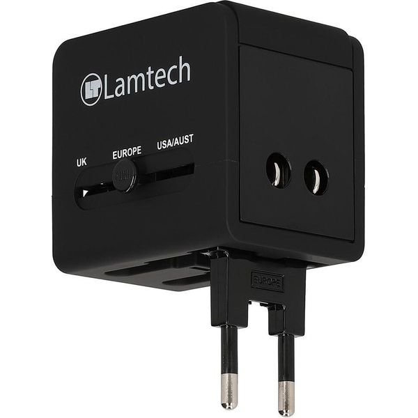 LAMTECH UNIVERSAL TRAVEL ADAPTER WITH 2 USB PORTS AC 6A BLACK LAM113829