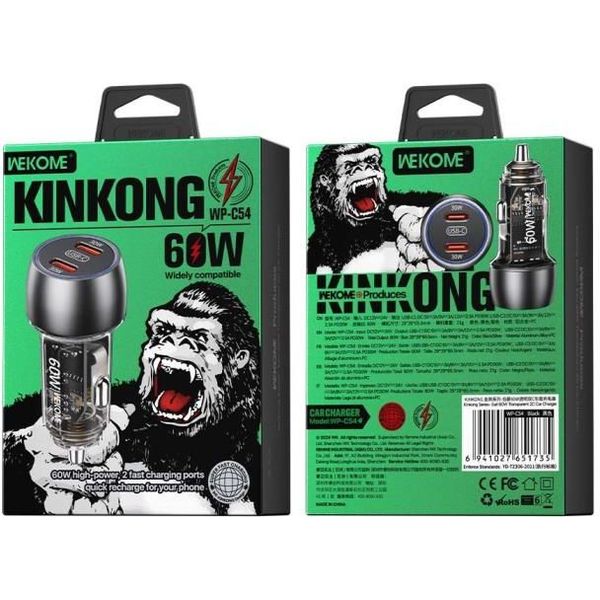 CAR CHARGER WK 60W DUAL PD BLACK WP-C54