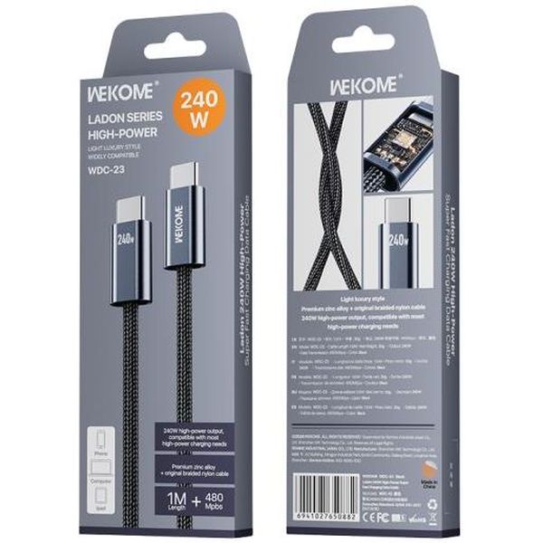 CHARGING CABLE WK 240W TYPE-C/TYPE-C BLACK 1M WDC-23