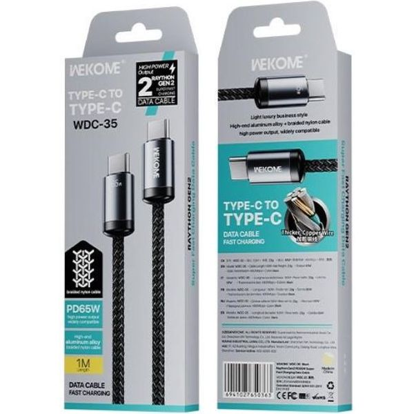 CHARGING CABLE WK 65W TYPE-C/TYPE-C BLACK 1M WDC-35 3A