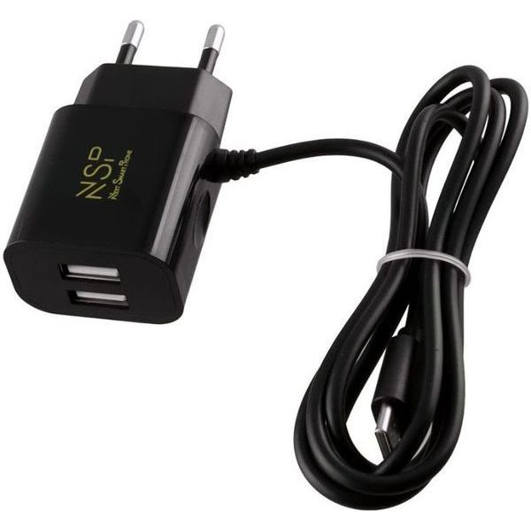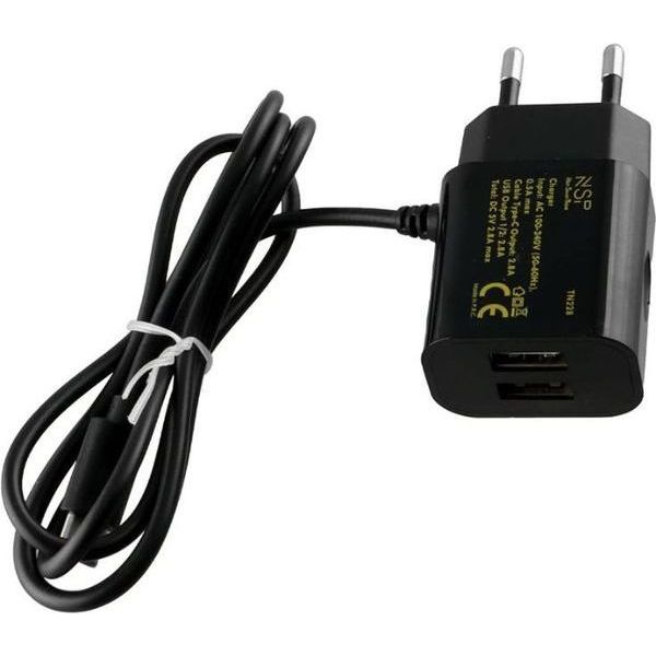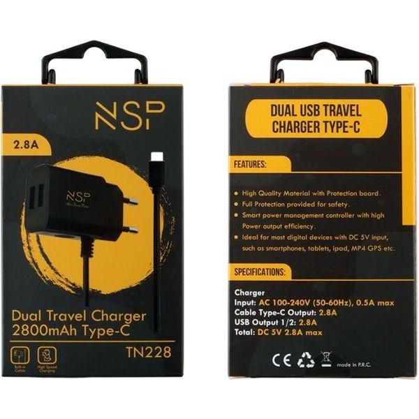 NSP TN228 ΜΑΥΡΟΣ ΦΟΡΤΙΣΤΗΣ ΤΑΞΙΔΙΟΥ DUAL USB-A ΜΕ ΕΝΣΩΜΑΤΩΜΕΝΟ ΚΑΛΩΔΙΟ TYPE-C 2800MAH