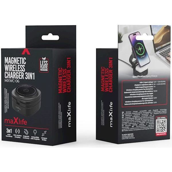 MAXLIFE MXWC-06 MAGNETIC WIRELESS CHARGER 15W BLACK 3IN1
