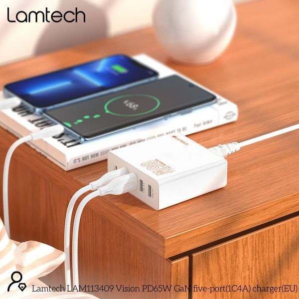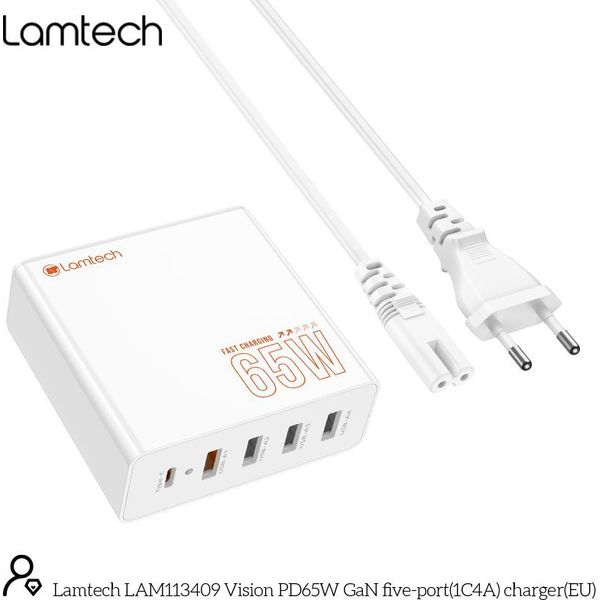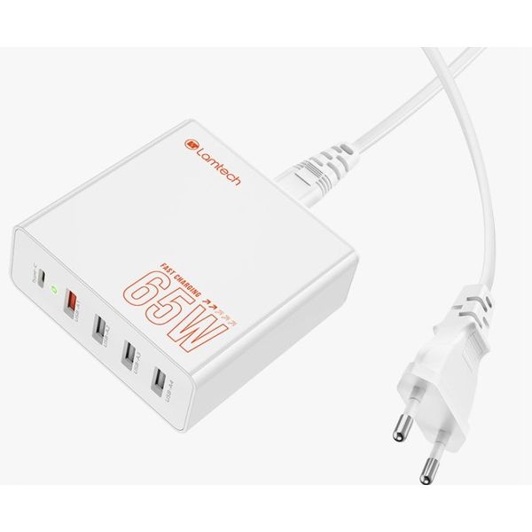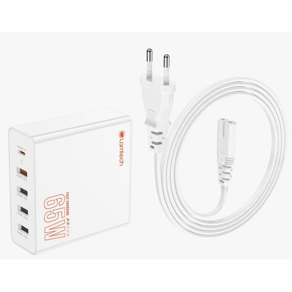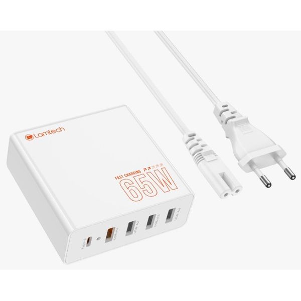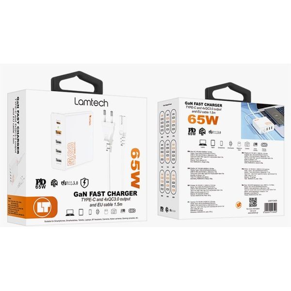 LAMTECH GAN FAST CHARGER 1XTYPE-C & 4XQC3.0 65W & EU CABLE 1.5M LAM113409