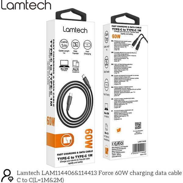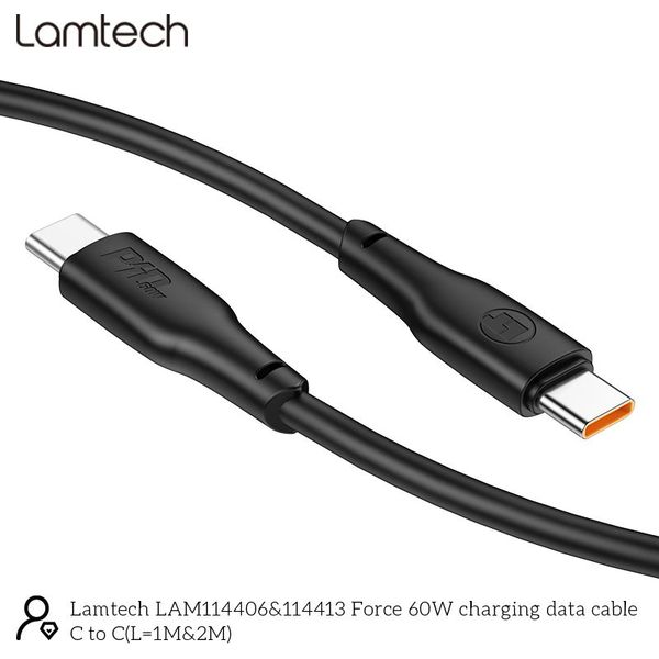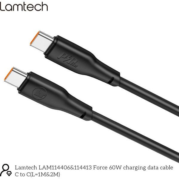 LAMTECH CHARGE AND DATA CABLE TYPE-C TO TYPE-C 60W 1M BLACK LAM114406