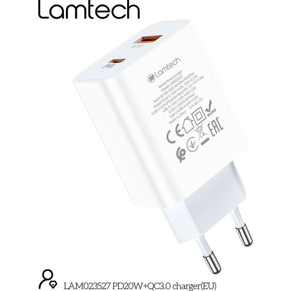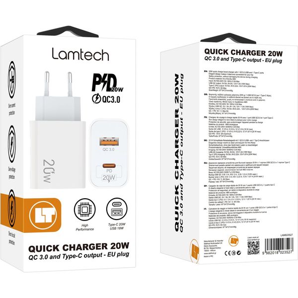 LAMTECH CHARGER USB QC3.0/TYPE-C 20W LAM023527