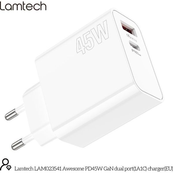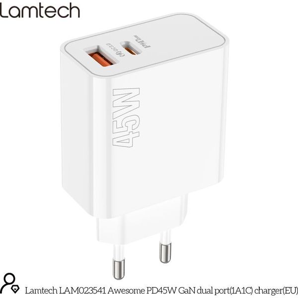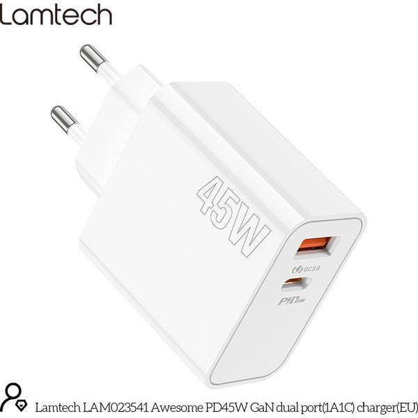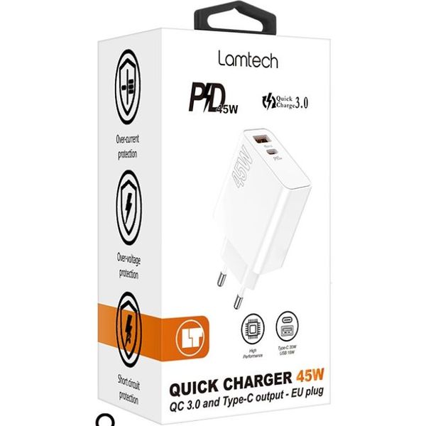 LAMTECH CHARGER USB QC3.0/TYPE-C 45W LAM023541