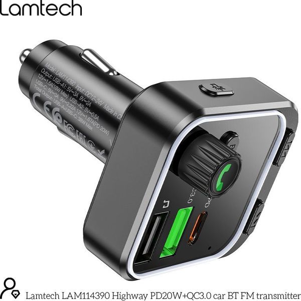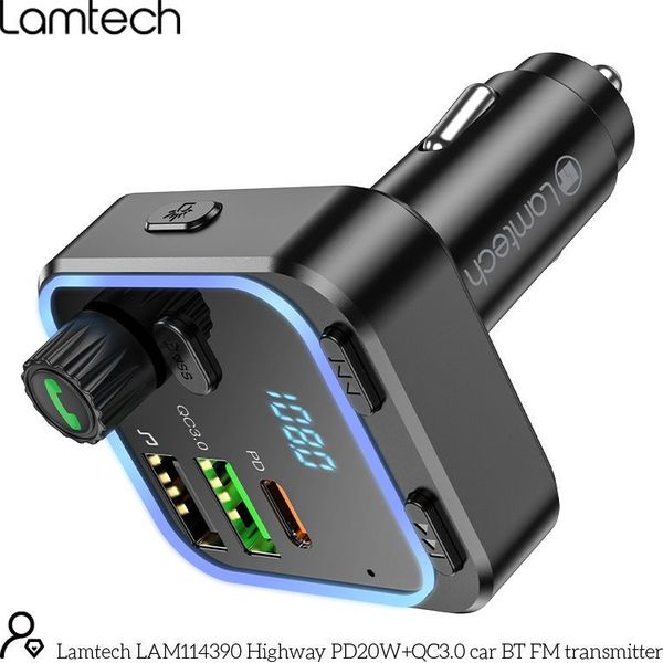 LAMTECH RGB BT5.0 FM TRANSMITTER QC3.0 PD20W LAM114390