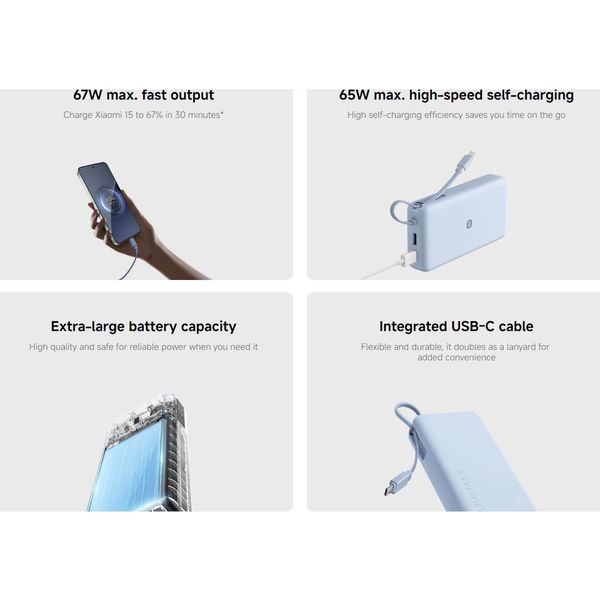 XIAOMI 67W POWER BANK 20000 (INTEGRATED CABLE) ICE BLUE BHR08O8GL