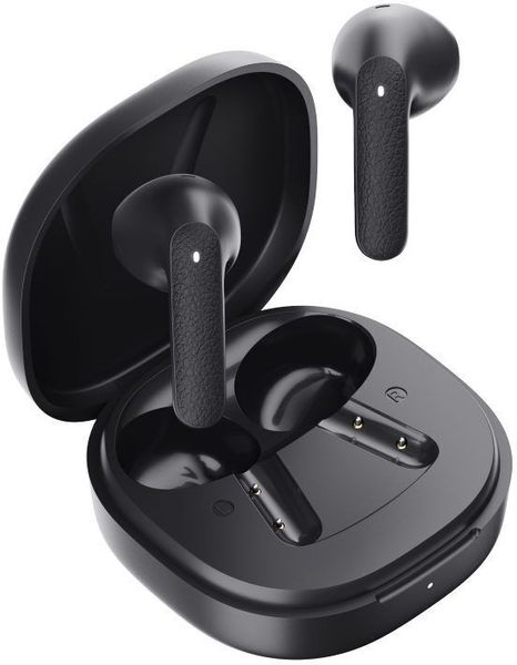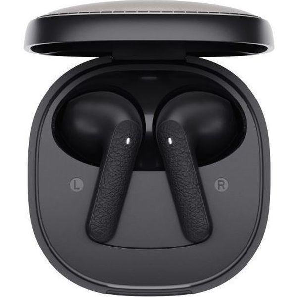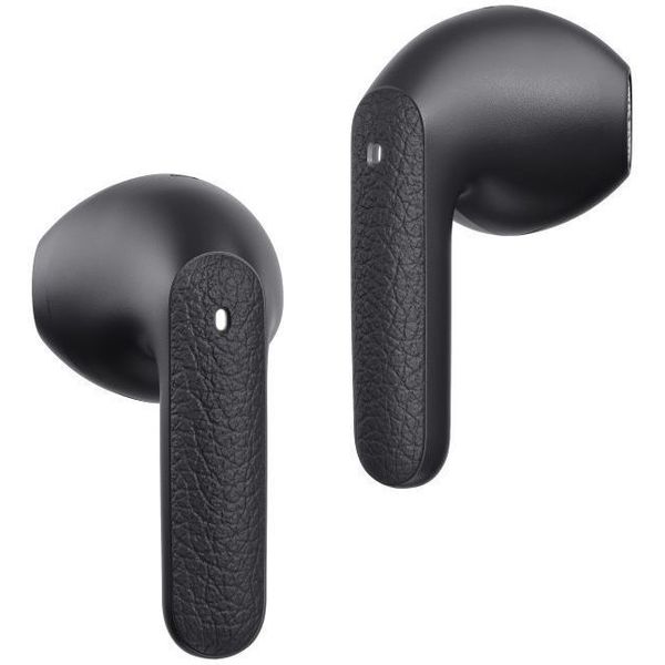 QCY AIR DARK GREY SEMI-EAR TWS EARBUDS, QUAD MIC ENC MULTI-POINT CONNECTION, LEATHER GRAIN CASE