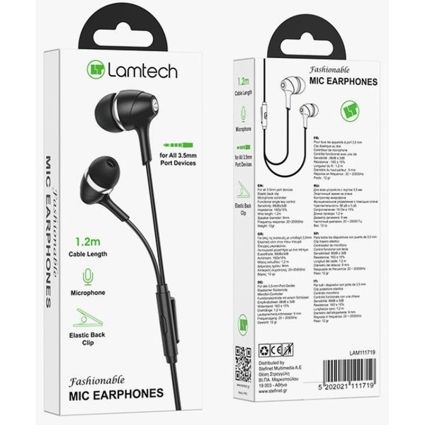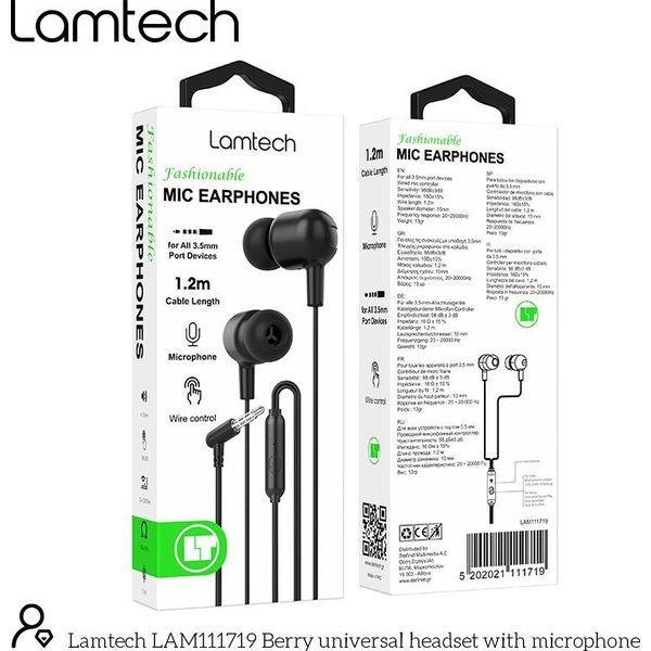 LAMTECH FASHIONABLE 3,5MM EARPHONES WITH MIC BLACK LAM111719