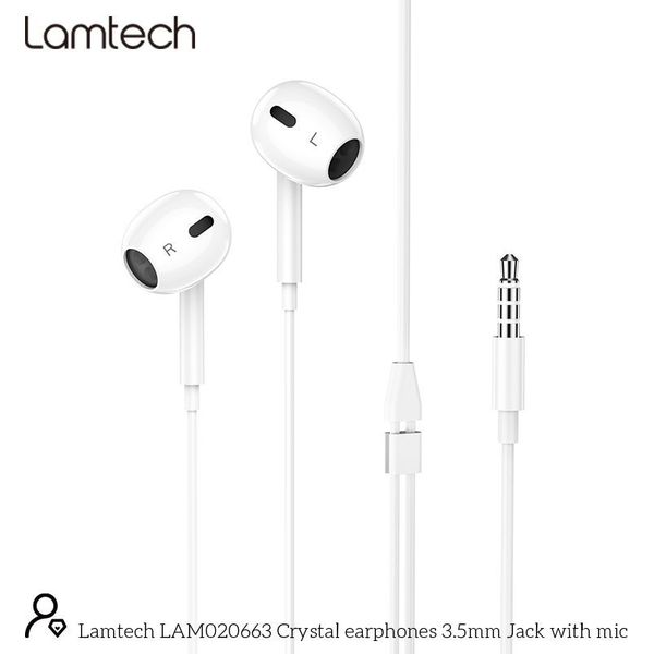 LAMTECH HANDSFREE STEREO 3,5MM JACK WITH MIC WHITE LAM020663