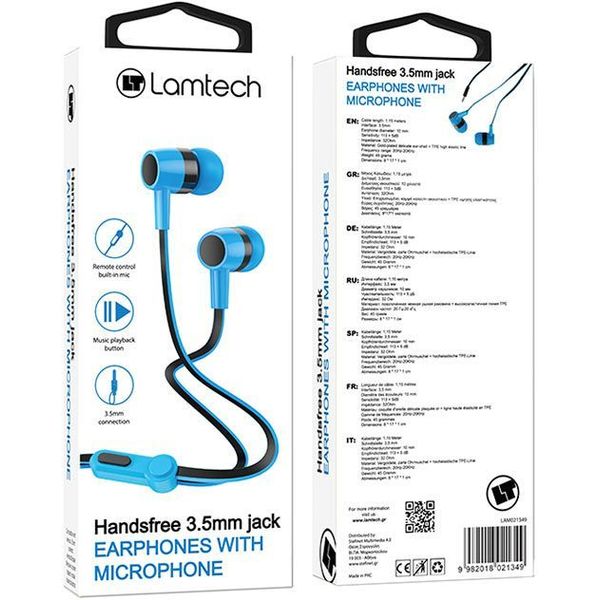 LAMTECH HANDSFREE WITH MIC 3,5MM JACK BLUE LAM021349