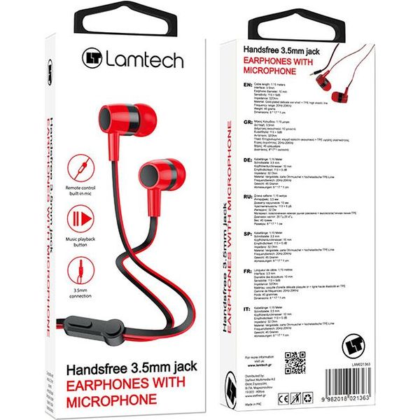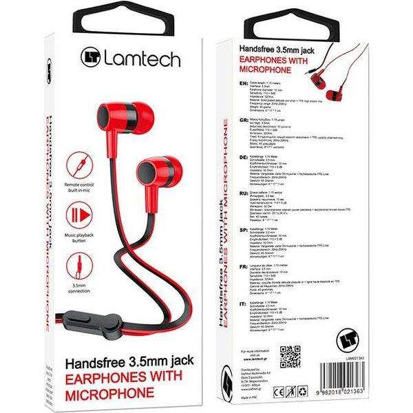 LAMTECH HANDSFREE WITH MIC 3,5MM JACK RED LAM021363