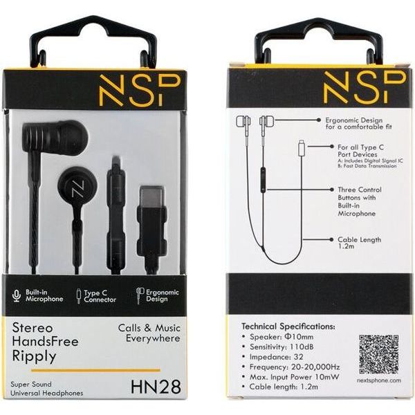 NSP RIPPLY HN28 ΣΤΕΡΕΟ UNIVERSAL ΜΑΥΡΟ HANDSFREE ΜΕ ΒΥΣΜΑ 3.5MM ON/OFF TYPE-C 1.2M