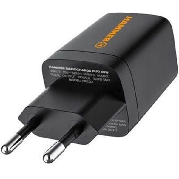ΦΟΡΤΙΣΤΗΣ ΤΑΞΙΔΙΟΥ HAMMER RAPIDCHARGE DUO DUAL USB-A & USB-C PD 30W BLACK