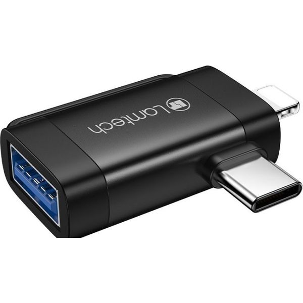 LAMTECH 2-IN-1 PORTABLE ADAPTER IP/USB-C MALE TO USB2.0 FEMALE BLACK LAM980534